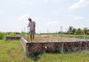Tương tự, ông Huỳnh Văn Cạn cũng ở ấp Tân Thạnh bị giải tỏa trắng gần 1.000 m2 đất và nhà, đi vay hơn 200 triệu đồng mua đất, đổ nền nhà kiên cố nhưng giờ phải bỏ dở vì không được nhận tiền bồi thường. Cả gia đình ông phải làm thuê đầu tắt mặt tối lo trả nợ.