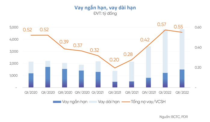Tính đến 30/06/2022, tổng nợ vay của Phát Đạt khoảng 4.842 tỷ đồng, trong đó khoảng 700 tỷ đồng đáo hạn trong hai quý cuối năm 2022 và khoảng 2.700 tỷ đồng trong năm 2023. Tỷ lệ nợ vay/vốn chủ sở hữu cuối quý II/2022 ở mức 0.55, chỉ số tương đối khá so với trung bình của ngành bất động sản - khoảng 0.74.