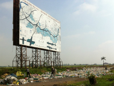 Dự án (phần đất phía Bắc Quốc lộ 32) bỏ không, người dân tận dụng mặt bằng phân loại rác (Ảnh chụp ngày 19/5/2013)