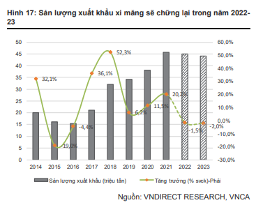 Do đó, VNDirect nhận định xuất khẩu xi măng và clinker của Việt Nam giai đoạn 2022 - 2023 sẽ xuống mức 45 triệu tấn bởi những yếu tố đến từ thị trường Trung Quốc.