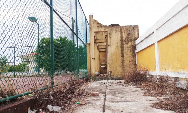 Khu nhà vệ sinh, phòng thay đồ hoang phế, cửa hỏng không mái che, các mảng tường đổ nát. Xung quanh cỏ dại mọc um tùm, héo úa. Sân lại nằm ngay sát các cơ quan hành chính như huyện ủy, UBND, Công an, Trung tâm hành chính công...