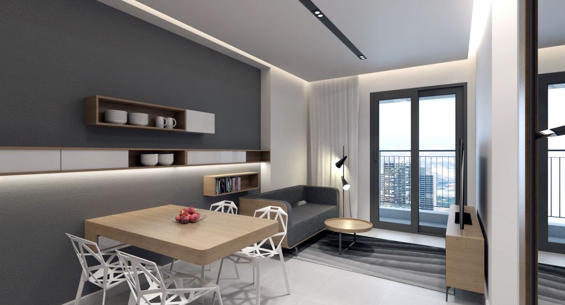 Với 3 gam màu chủ đạo xám – trắng- gỗ mang lại vẻ đẹp sang trọng căn hộ