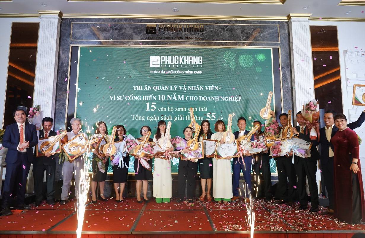 Buổi đại tiệc là mốc son đáng nhớ mà gia đình Phúc Khang cùng nhìn lại chặng đường 10 phát triển, đón nhận bằng khen của Bộ Xây dựng và vinh danh những cá nhân, tập thể có thành tích xuất sắc trong hành trình xanh 10 năm qua.