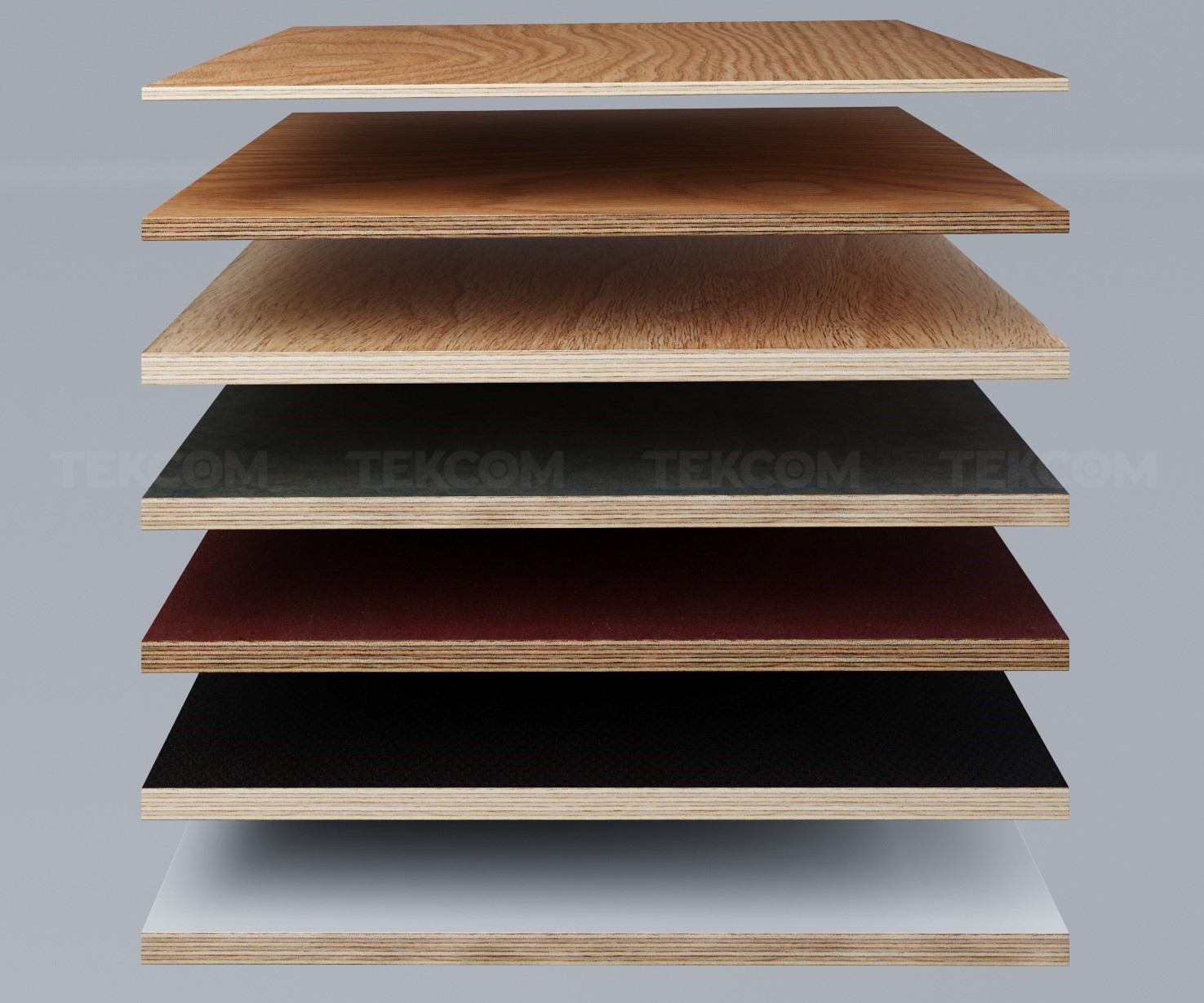 Bên cạnh việc lưu giữ vẻ đẹp của gỗ với lớp bề mặt tự nhiên, plywood cũng có thể biến tấu với lớp phủ nhân tạo như giấy, nhựa, hay các sản phẩm cao cấp như HPL (High Pressure Laminate). Bề mặt của plywood thích hợp trong việc phủ các loại chất liệu khác nhau, đem đến cho plywood những cá tính hiện đại trong khi vẫn lưu giữ “cảm giác gỗ” thuần khiết.