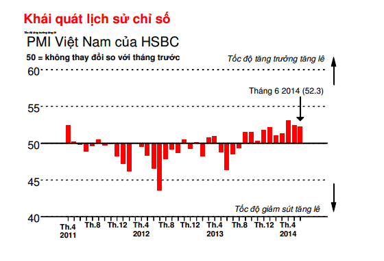 Nhận định về PMI tháng 6 của Việt Nam, chuyên gia kinh tế phụ trách khu vực châu Á của HSBC, Trinh Nguyễn cho biết: Lĩnh vực sản xuất tiếp tục mở rộng với tốc độ khả quan dù có phần nhẹ hơn. Nguyên nhân chính là do nhu cầu cao hơn. Dù nhu cầu bên ngoài suy yếu nhưng chúng tôi kỳ vọng đây chỉ là tạm thời. Trong bối cảnh lượng hàng lưu kho còn thấp và số đơn đặt hàng mới gia tăng mạnh mẽ, chúng tôi kỳ vọng lĩnh vực sản xuất tiếp tục phát triển tốt, đặc biệt khi những căng thẳng đã dịu dần trong thời gian gần đây.