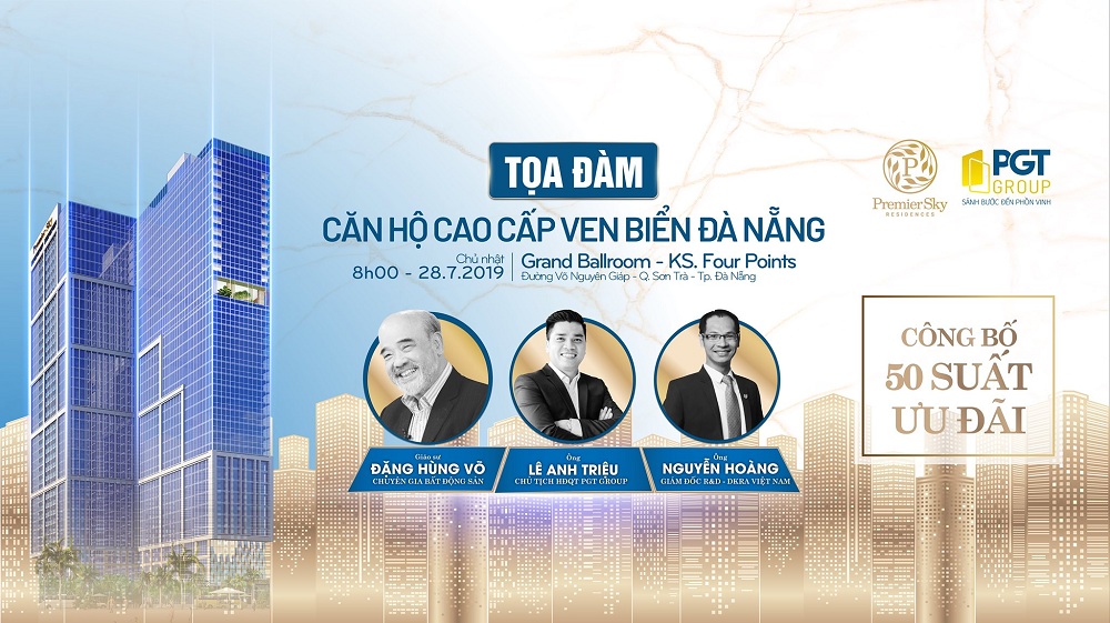 Trong buổi tọa đàm sẽ có phần công bố 50 suất ưu đãi đặc biệt dành riêng cho 50 khách hàng thân thiết, những người đã tin tưởng, đồng hành cùng PGT Group và dự án Premier Sky Residences trong thời gian qua.