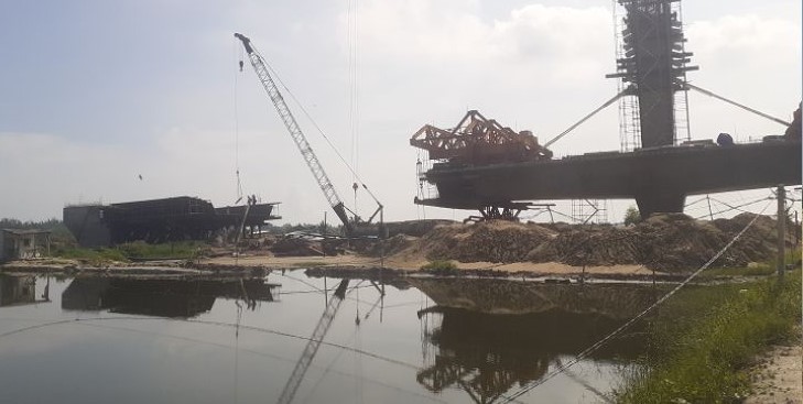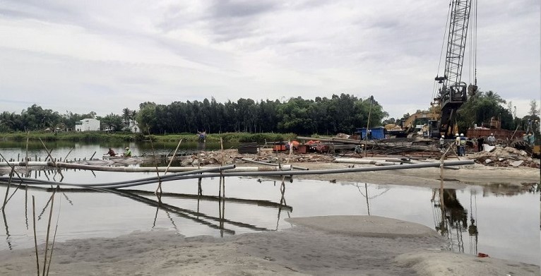 Hình ảnh thực tế tại công trường xây dựng cầu Ông Điền bắt qua sông Cổ Cò được ghi nhận vào tháng 10.2020