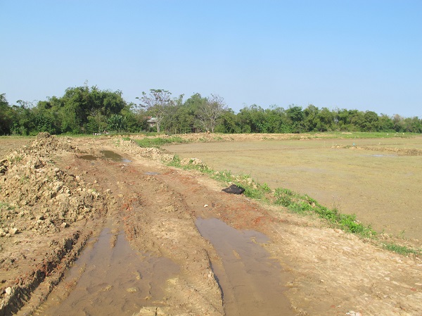 Con đường dẫn vào ruộng bị các loại xe múc cày nát. Ảnh: HỮU LONG