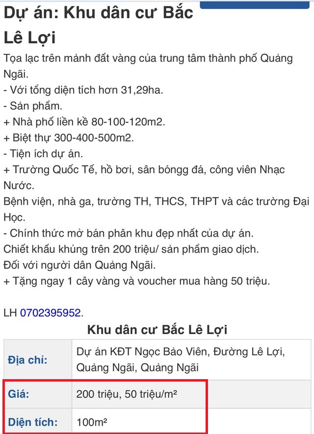 Theo tìm hiểu của PV Báo Dân Việt, tại 3 DA KDC có vị trí được xem là đẹp nhất ở TP.Quảng Ngãi là Ngọc Bảo Viên, Phát Đạt và KDC Lê Lợi, hiện giá được rao bán trung bình cũng phải 2,5 tỷ đồng/lô, nền. Trong khi giá mà người dân ở gần các dự án này bán thấp hơn 1/2. "Trừ số thu nhập khá và thừa tiền lắm của, dù cơ sở hạ tầng tại các dự án tốt nhưng không ai chọn bỏ, tốn tiền tỷ đồng để mua ở tại các dự án này", anh Nguyễn Văn Hiền, bày tỏ