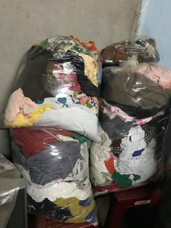 Quần áo được cho sẵn vào túi nilon để tránh mưa dột.
