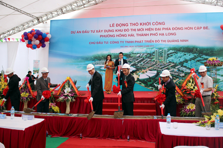 Nghi thức khởi công dự án khu đô thị mới hiện đại phía Đông hòn Cặp Bè, phường Hồng Hải, TP Hạ Long. Ảnh: Cổng TTĐT Quảng Ninh.
