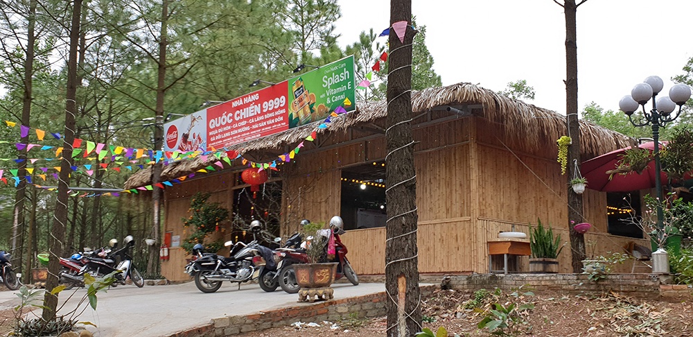 Nhà hàng phục vụ ăn uống được người dân xây dựng kiên cố hoạt động trên đất rừng sản xuất hồ Yên Trung nhưng không bị chính quyền địa phương xử lý (Chụp ngày 12/2)