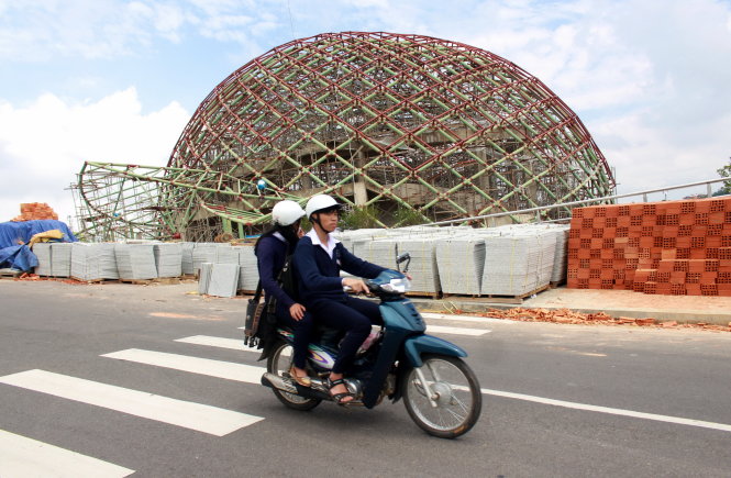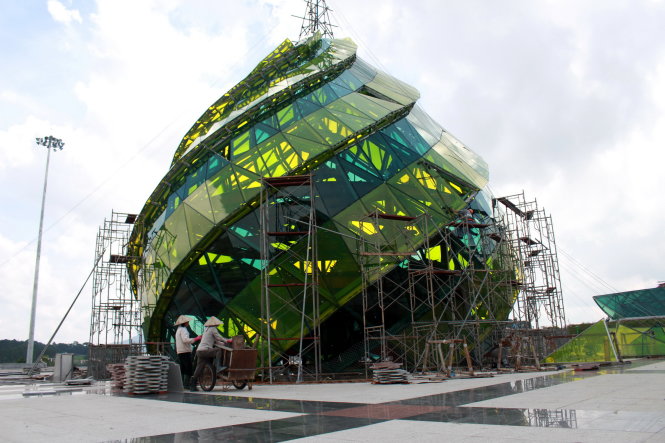 Riêng công trình cung nghệ thuật được cách điệu bằng bông hoa dã quỳ khổng lồ, nổi bật tại vị trí quảng trường mới chỉ hoàn thành xong bộ khung sắt. Thoạt nhìn người dân rất khó hình dung hai công trình trên nếu không có người giải thích.
