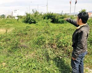 Khu đất hoang này được Quốc Cường Gia Lai hứa sẽ “biến” thành khu đất nền giao cho khách hàng vào ngày 15/8. Ảnh:T.H