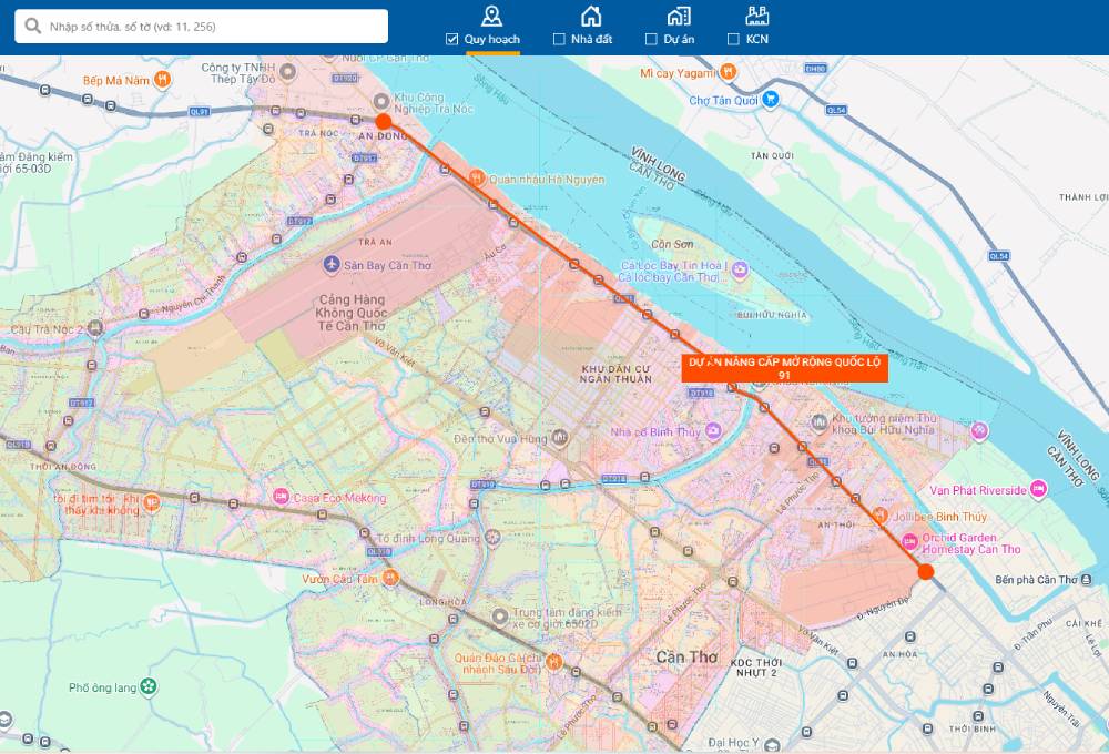 >>Bản đồ quy hoạch vị trí dự án nâng cấp, mở rộng Quốc lộ 91 (đoạn từ km0-km7)