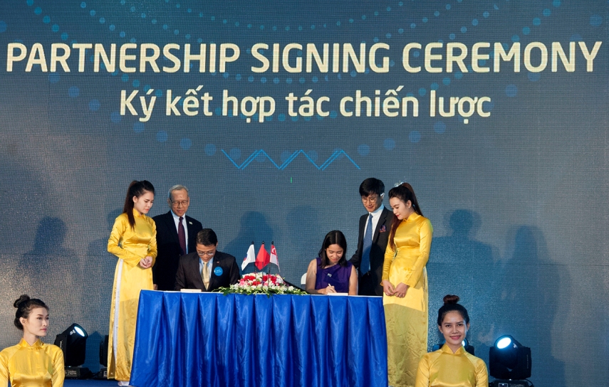 Tổng quản lý Ascott Vietnam - Mark Chan và Tổng giám đốc NHO - Trần Thị Dịu Hòa tại lễ ký kết