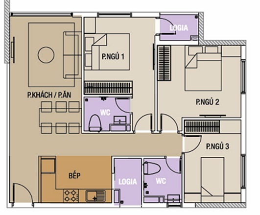 Căn hộ góc loại C ba phòng ngủ (80,5m2-83m2)