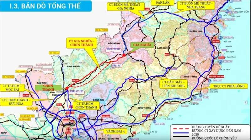 Bản đồ hướng tuyến Cao tốc Gia Nghĩa - Chơn Thành