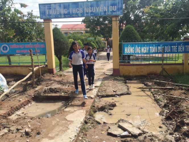 Theo quan sát của phóng viên, tại lối đi chính đã bị đục bỏ bê tông và khoét sâu xuống đất một khoảng rộng chừng 1,5m. Một khoảng đường đất trước cổng trường bên cạnh lối đi chính cũng bị đào lên tạo rãnh nước không cho học sinh có lối vào trường.