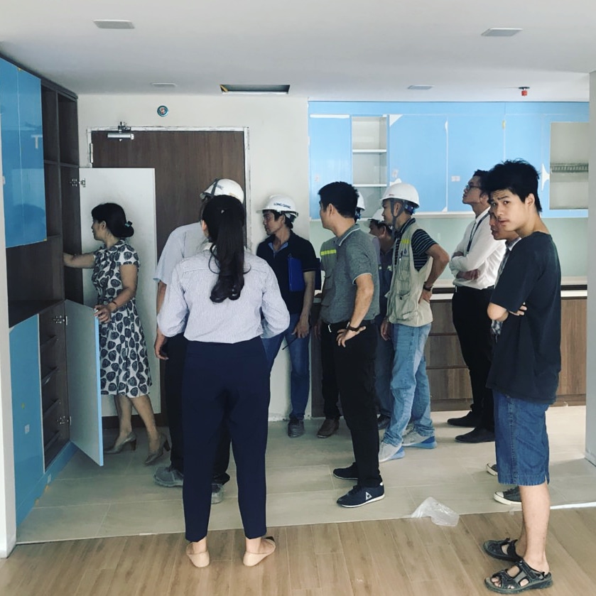 Khách hàng đến thăm quan căn hộ tương lai trước khi nhận bàn giao
