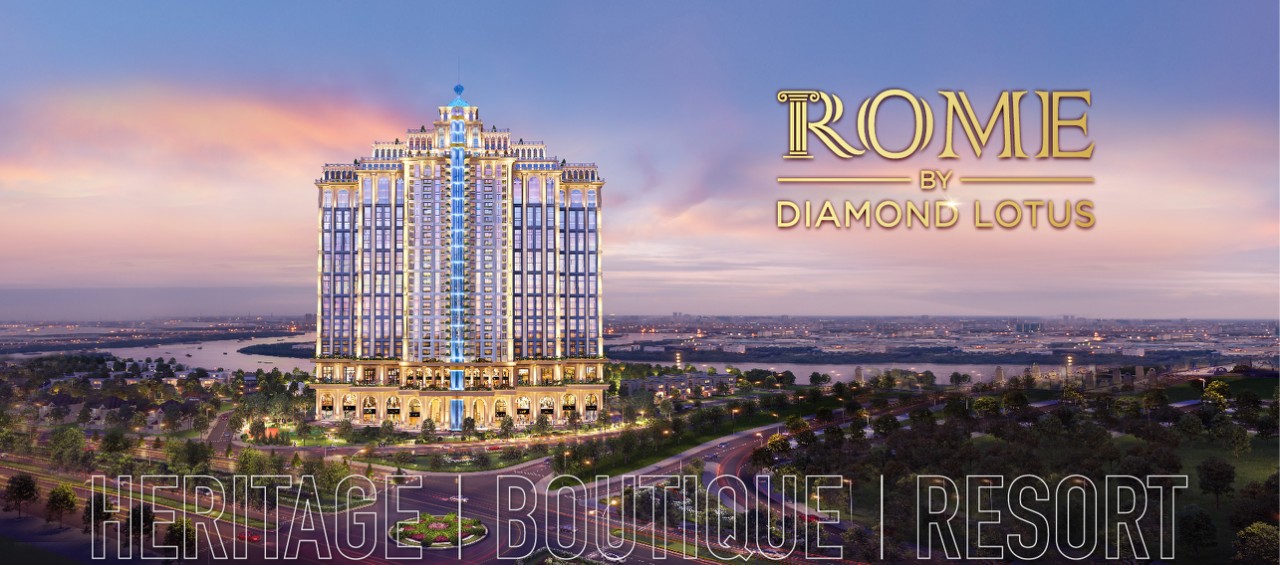 Tọa lạc trên mặt tiền đại lộ Mai Chí Thọ (Thủ Thiêm, Quận 2), tòa thành Rome by Diamond Lotus gói trọn những tinh hoa kiến trúc cổ điển Italia trường tồn với thời gian