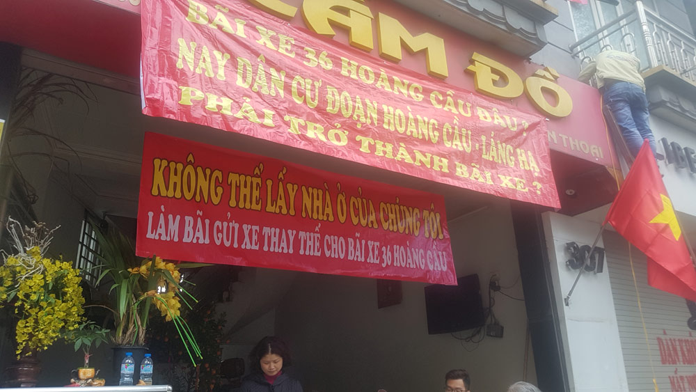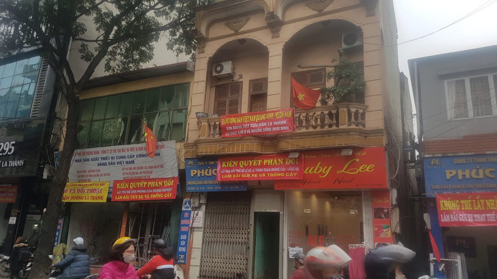 Như VietNamNet đã đưa tin, hơn 100 hộ dân mặt đường La Thành (quận Đống Đa, Hà Nội) nằm trong diện thu hồi đất phục vụ dự án làm bãi đỗ xe và cây xanh (thuộc dự án đường vành đai 1 đoạn Hoàng Cầu - Voi Phục) đã treo băng rôn phản đối từ tháng 8/2017.
