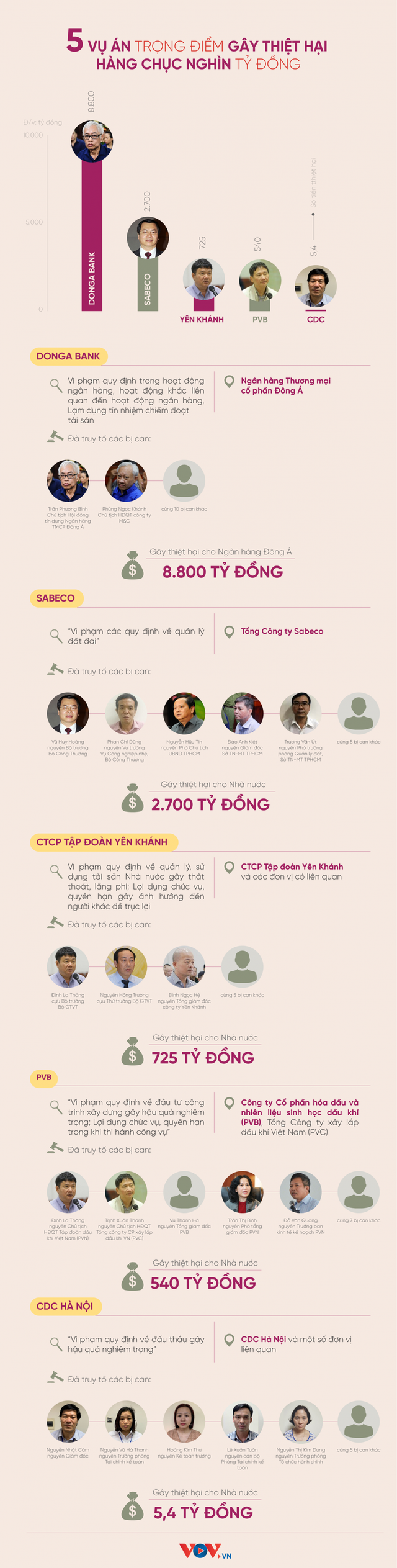 Theo Ban Chỉ đạo Trung ương về phòng, chống tham nhũng, từ nay đến cuối năm 2020 sẽ khẩn trương hoàn thành việc xét xử sơ thẩm 5 vụ án trọng điểm.