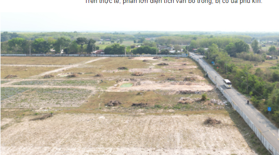 Trên thực tế, phần lớn diện tích vẫn bỏ trống, bị cỏ úa phủ kín.