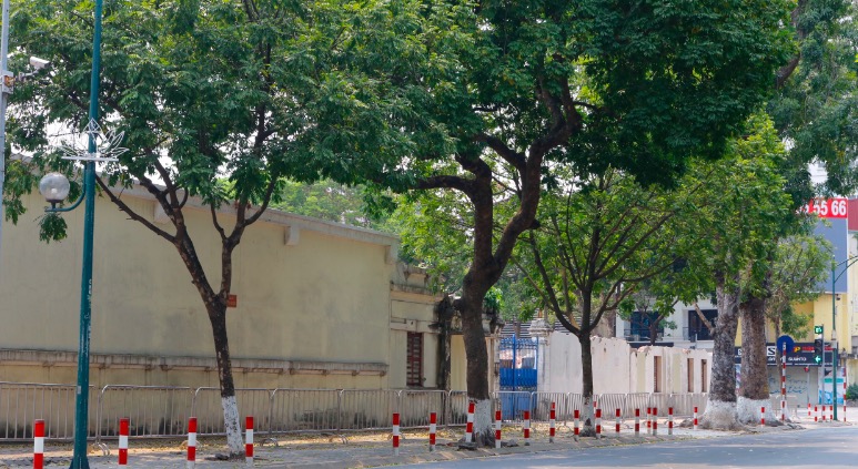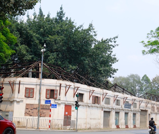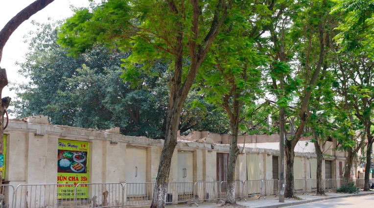 Trước đó, dãy nhà chạy dọc 4 mặt phố Hùng Vương - Trần Phú - Lê Trực - Nguyễn Thái Học, cách Quảng trường Ba Đình vài trăm mét đã được rào chắn để thi công toà cao ốc 11 tầng.