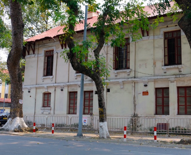 Theo tìm hiểu, trên bức tường của dãy nhà cũ phía mặt đường giao phố Nguyễn Thái Học - Lê Trực có một bức phù điêu hình ảnh dân quân tự vệ bảo vệ Hà Nội trong kháng chiến chống Mỹ.