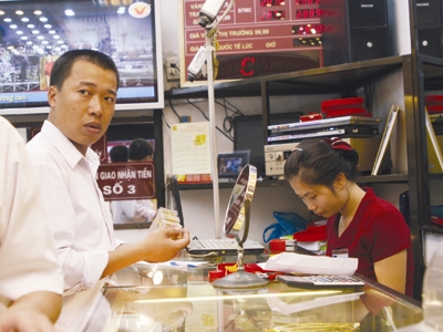 Ông Nguyễn Công Tường, Trưởng phòng Kinh doanh Cty Vàng bạc đá quý Sài Gòn, cho biết sức mua những ngày gần đây giảm hẳn, một ngày chỉ mua bán chưa tới ngàn lượng, trong khi trước đây ít cũng bốn, năm ngàn lượng.