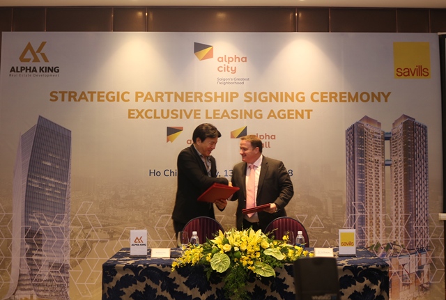 Theo thỏa thuận vừa ký, Alpha King chính thức bổ nhiệm Savills Việt Nam là đơn vị cung cấp dịch vụ cho thuê độc quyền dự án văn phòng Alpha Town và khu trung tâm mua sắm Alpha Mall tại Quận 1, TP.HCM.