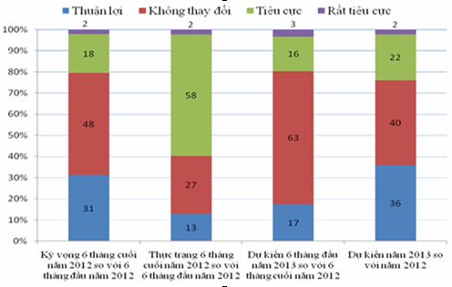 Trong cuộc khảo sát tháng 6/2012 của Ngân hàng Nhà nước cho thấy, chỉ có 20% tổ chức nhận định rằng điều kiện kinh doanh 6 tháng cuối năm 2012 có ảnh hưởng tiêu cực đến hoạt kinh doanh của họ. Tuy nhiên, tại cuộc điều tra vào tháng 12/2012, khi nhìn lại thực trạng 6 tháng cuối năm 2012, có đến 60% tổ chức tín dụng nhận định lại rằng, môi trường kinh doanh chung đã ảnh hưởng tiêu cực và rất tiêu cực tới hoạt động kinh doanh của họ.