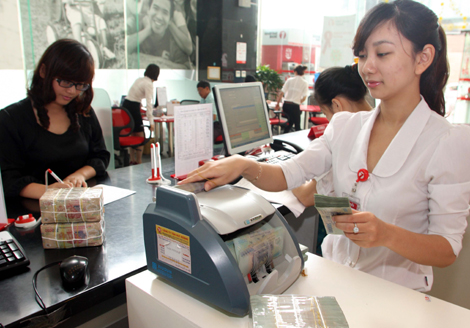 Giao dịch tại Ngân hàng Thương mại cổ phần Hàng Hải. Ảnh: Trần Việt - TTXVN