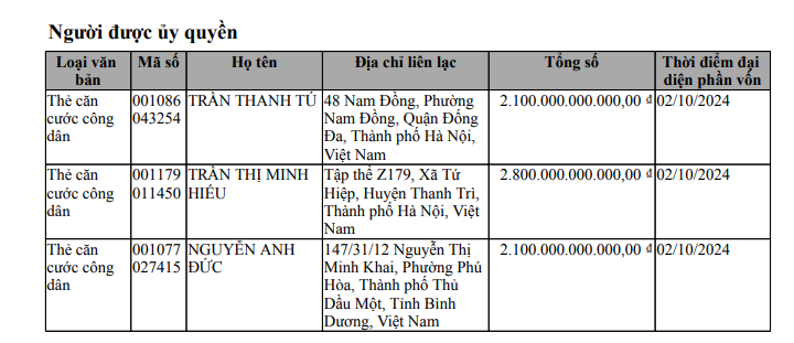 Công ty TNHH Bất động sản Phương Đông đã ủy quyền cho 3 cá nhân là Trần Thanh Tú, Trần Thị Minh Hiếu, Nguyễn Anh Đức sở hữu phần vốn góp lên tới 7.000 tỷ đồng.