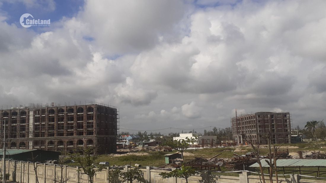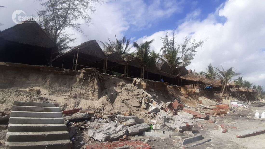 Bên cạnh dự án là hàng chục dãy nhà hàng biển tại bãi tắm An Bàng bị sóng đánh sập