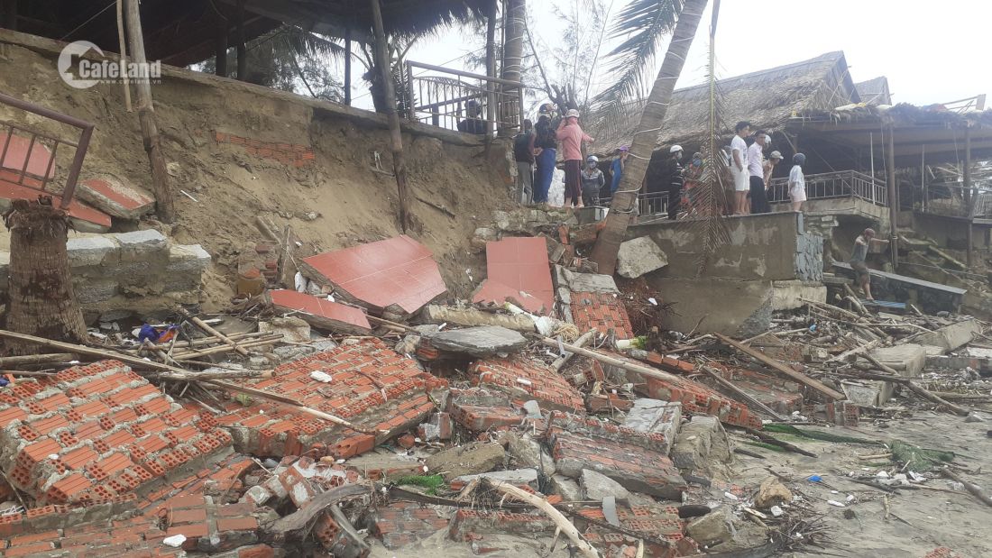 Bão số 13 càn quét qua địa bàn tỉnh Quảng Nam đã khiến cho nước biển dâng cao kèm theo sóng lớn đánh sập bờ kè, gây sạt lở nghiêm trọng suốt chiều dài 8km bờ biển Hội An, Quảng Nam.