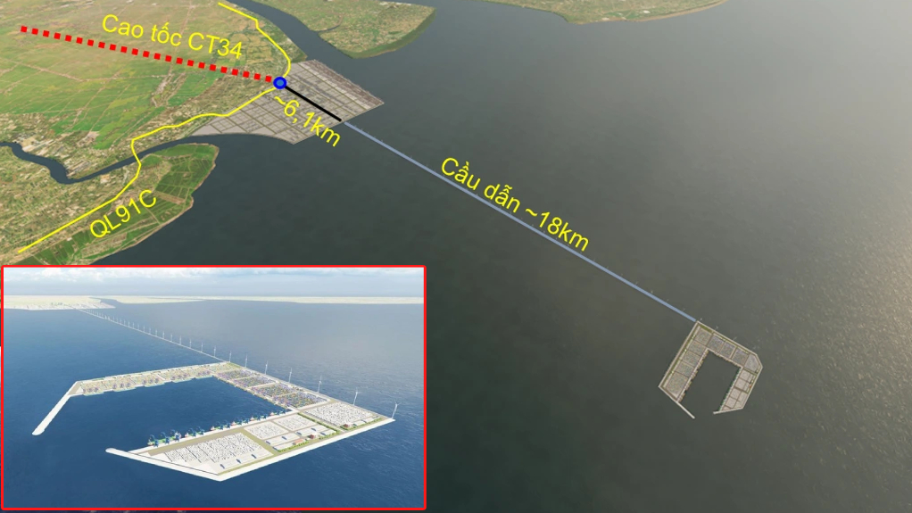 Theo báo cáo, quy hoạch cảng biển nước sâu Trần Đề có diện tích mặt bằng cảng hơn 411ha, trong đó cầu cảng dài 5.300m tiếp nhận tàu tổng hợp, tàu container tới 160.000 DWT, hệ thống kè chắn sóng dài 8.800m và cầu vượt biển dài 17,8km, rộng 28m.