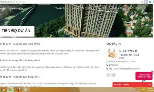 Còn nhớ, tháng 12/2014, trong thông cáo báo chí từ chủ đầu tư, dự án D’. Le Pont D’or – Hoàng Cầu đã cơ bản hoàn thành 95% khối lượng tầng hầm 1 và bắt đầu bước sang phân đoạn một thi công tầng hầm 2. Dự án sẽ hoàn thành đúng tiến độ theo kế hoạch đã cam kết với khách hàng vào quý IV/2015. Nay, chỉ còn chưa đầy 2 tháng, thời hạn cam kết bàn giao căn hộ đã bất ngờ được “đính chính” trên website chính thức của THM: “Tập đoàn Tân Hoàng Minh khẳng định D’. Le Pont D’or – Hoàng Cầu sẽ hoàn thành và được đưa vào sử dụng từ quý I/2016”.