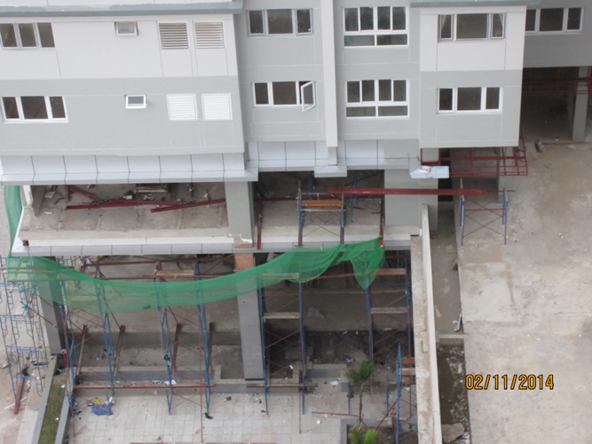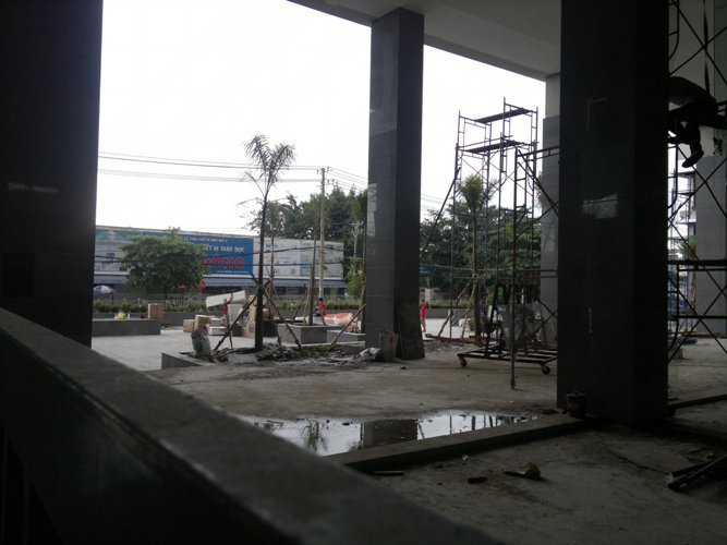 Hiện trường khu vực trung tâm thương mại đang thi công bề bộn, nhếch nhác