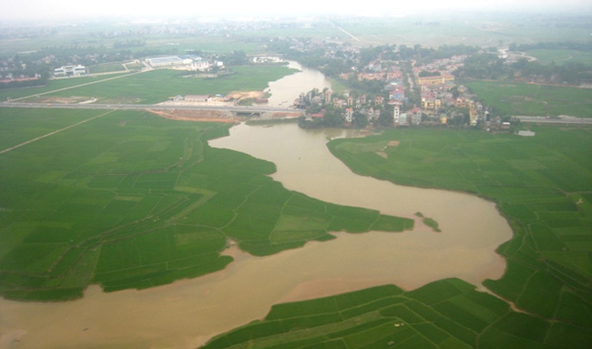 Một đoạn sông Hồng nhìn từ trên cao. (Nguồn ảnh: vovworld.vn).