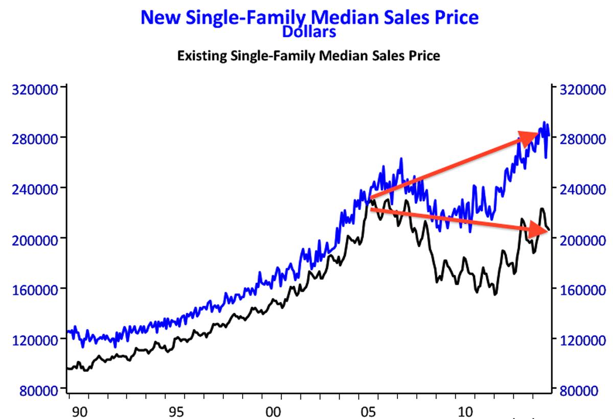 Khoảng cách giữa giá nhà mới và giá nhà hiện tại thường vào khoảng 15% - 20%. Nhưng trong vài năm trở lại đây, khoảng cách đã được mở rộng tới 30% - 40%.