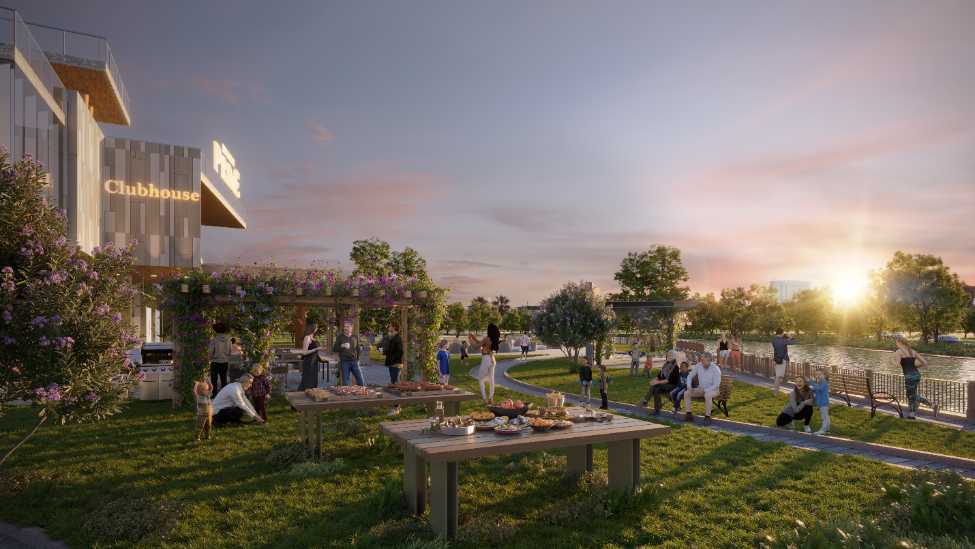 Khu BBQ và đường dạo bộ ven sông giúp gắn kết tình thân và nâng cao sức khỏe của mọi thành viên trong gia đình