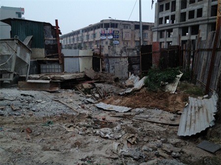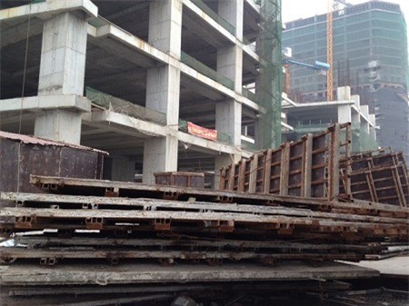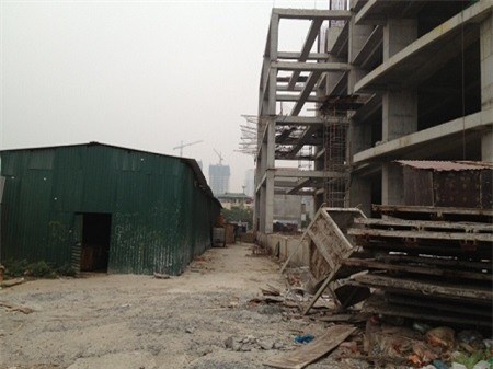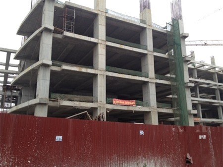 Tuy nhiên, đến thời điểmngày 12/12, dự án mới chỉ xây dựng đến tầng 5-6 . Quan sát cả công trường mới chỉ có vài công nhân đang thu dọn cốt pha.