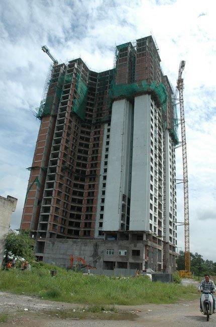 Dự án chung cư 6B tại huyện Bình Chánh của Công ty Quốc Cường Gia Lai đang xin “chẻ” nhỏ diện tích căn hộ và chuyển sang nhà ở xã hội. Ảnh: Đình Dũng