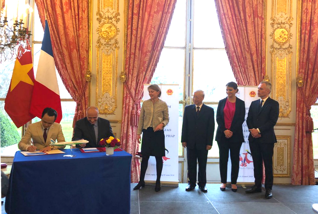 Đại diện ký kết của hai doanh nghiệp là Chủ tịch Tập đoàn FLC Trịnh Văn Quyết và Phó Chủ tịch Airbus phụ trách thương mại Eric Schulz.
