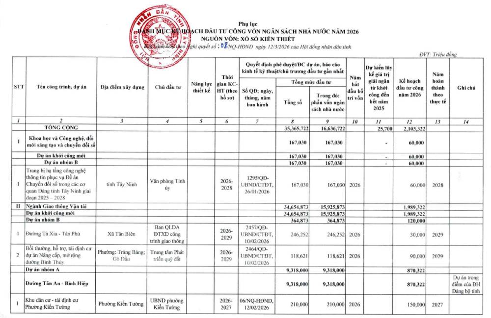 Việc phân bổ nguồn vốn đầu tư công năm 2026 được kỳ vọng sẽ góp phần đẩy nhanh tiến độ các dự án hạ tầng trọng điểm, đặc biệt là các tuyến giao thông kết nối liên vùng và dự án Vành đai 4 TP.HCM, qua đó tạo thêm động lực phát triển kinh tế - xã hội cho tỉnh Tây Ninh trong giai đoạn tới.