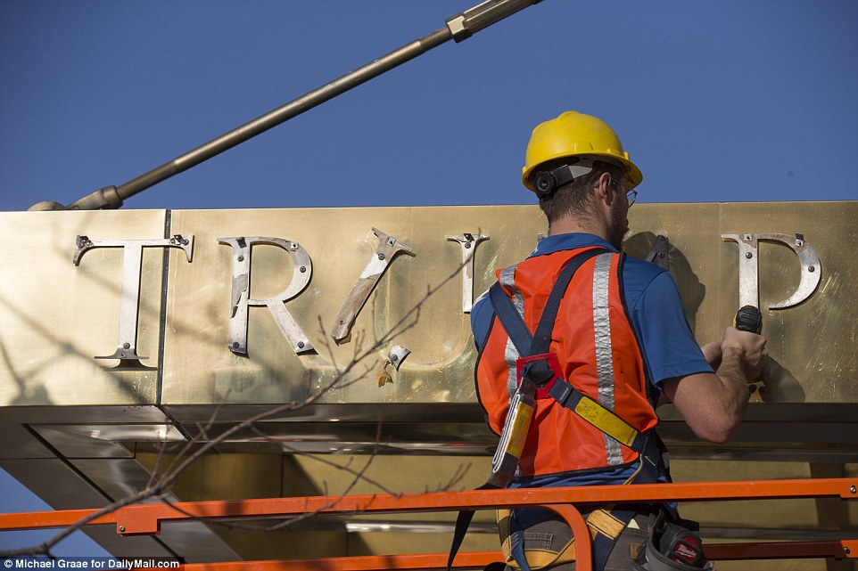 Sau đây là một số hình ảnh về việc xóa bỏ tên của Trump khỏi chung cư Trump Place: