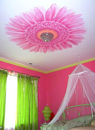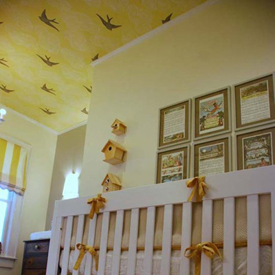 | Với phòng của trẻ nhỏ, bạn có thể trang trí trần nhà bằng hình vẽ dễ thương, độc đáo. |