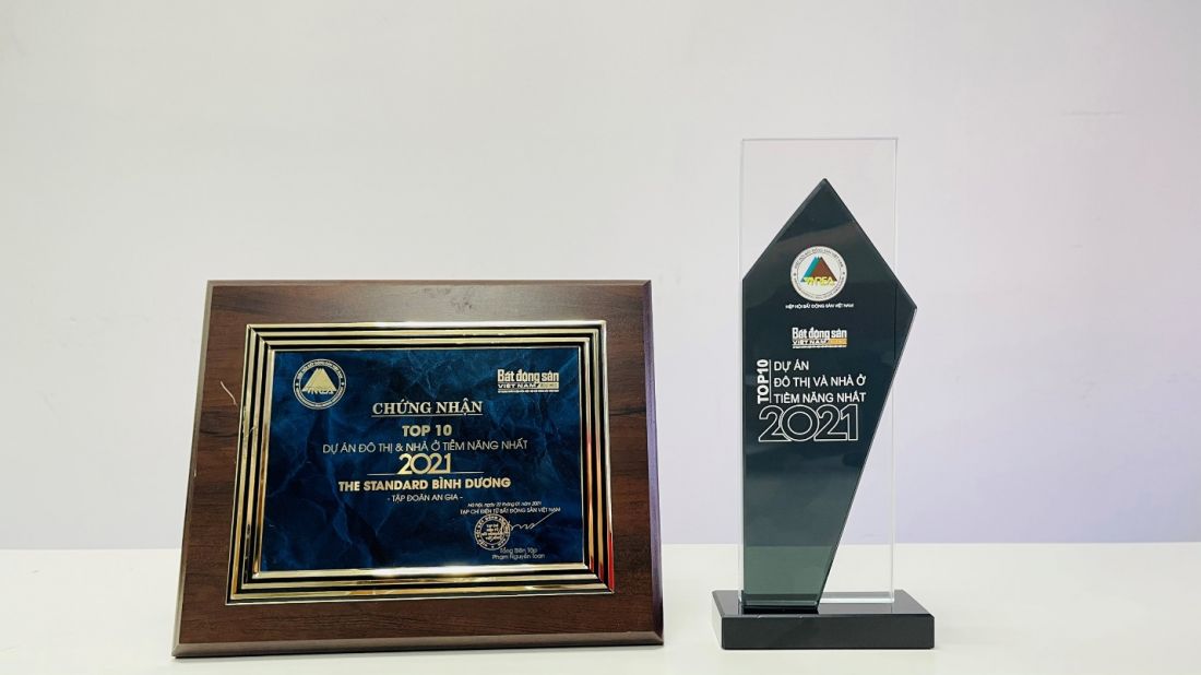 Vượt qua hàng trăm dự án bất động sản cùng các tiêu chí đánh giá khắt khe từ Ban tổ chức như: tiến độ xây dựng, triển vọng giao dịch, giá cả cạnh tranh, chất lượng tốt, chủ đầu tư uy tín, thiết kế vượt trội, tiện ích đồng bộ,… dự án The Standard của Tập đoàn BĐS An Gia (AGG) đã xuất sắc được vinh danh Top 10 dự án đô thị và nhà ở tiềm năng nhất 2021. Đây cũng là dự án nhà ở duy nhất tại Bình Dương nhận được giải thưởng danh giá này.